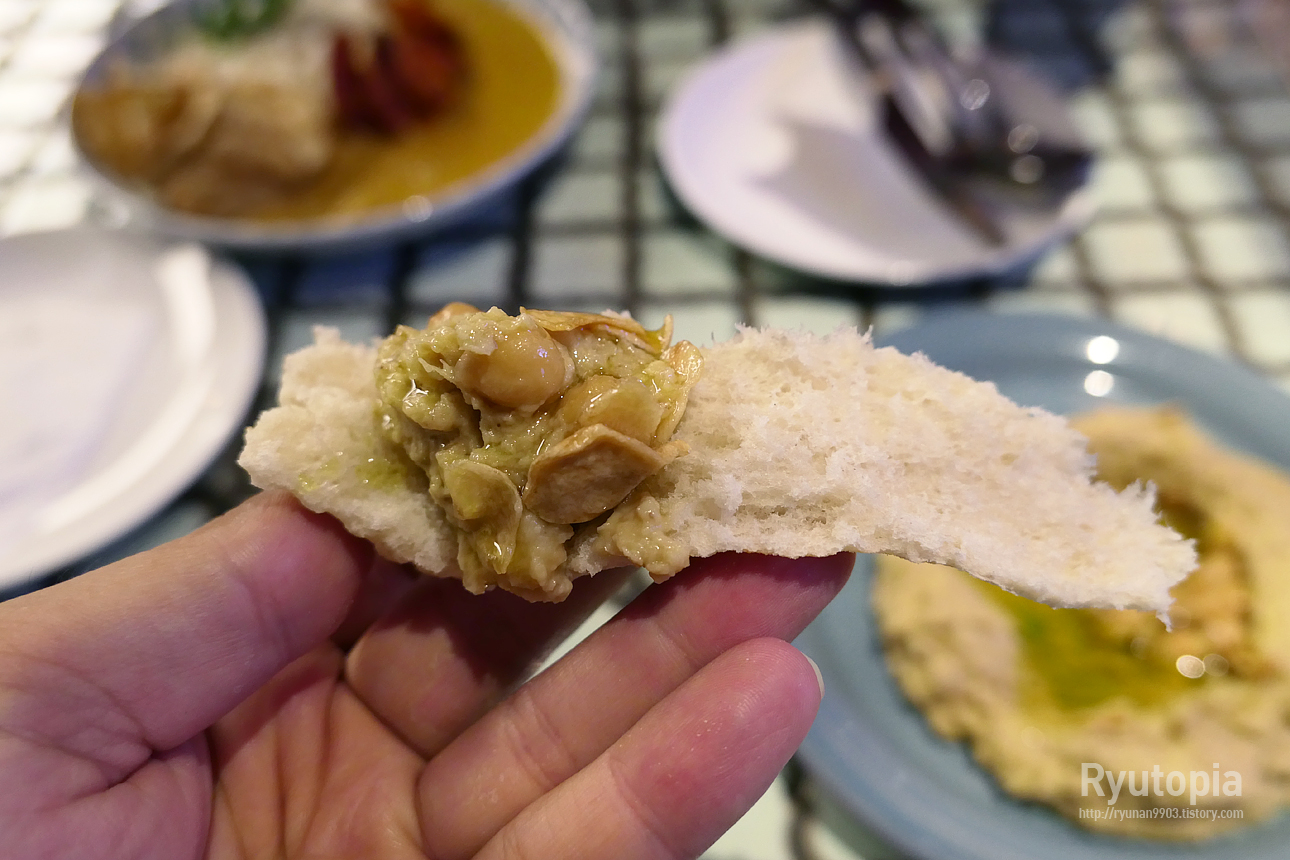그리고 후무스는 뭐랄까... 처음엔 살짝 씁쓸하면서 조금 생소한, 뭔가 예상했던 것과는 다른 맛이라 이상했지만