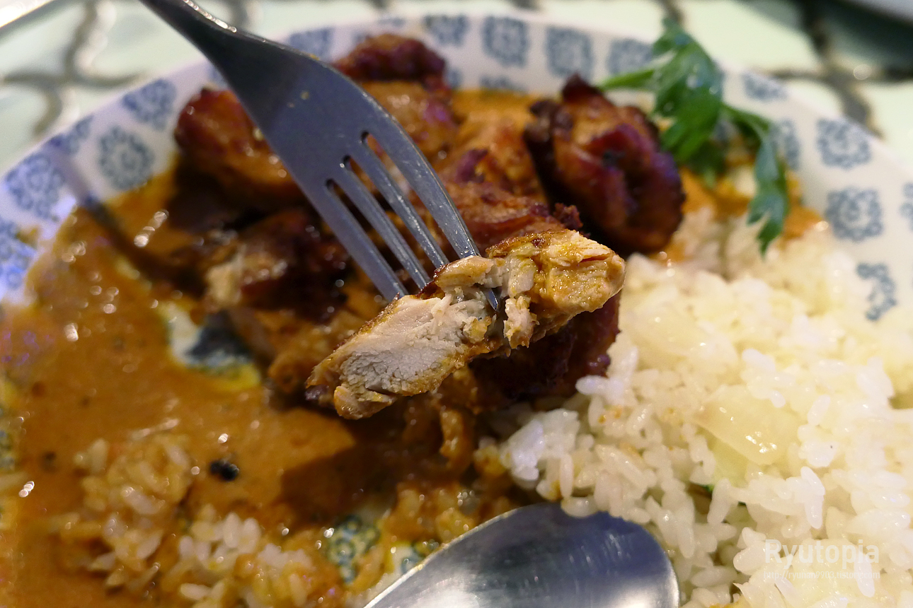 일본식 카레라이스처럼 한 접시 위에 밥과 치킨, 그리고 커리가 한데 담겨 나오는 게 특징입니다.