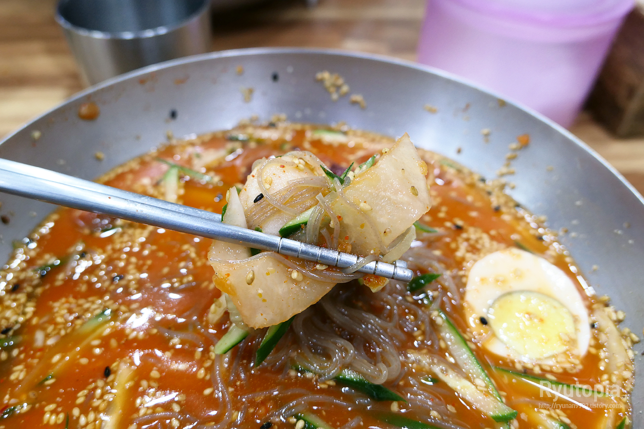 꽤 자극적이면서 얼큰한 국물의 냉면 좋아하는 분들에게 맞춰진 음식.