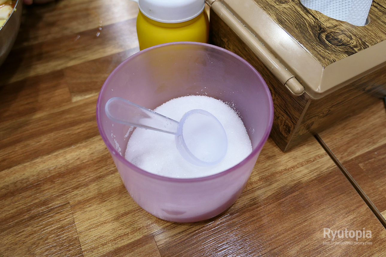 설탕을 살짝 두른 뒤 취향에 따라 겨자를 약간 넣고(국물이 자극적이라 안 넣어도 괜찮아요)