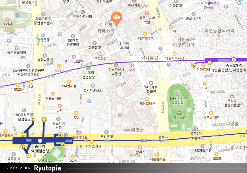 ※ 태극당 인사점 찾아가는 길 : 지하철 1,3,5호선 종로3가역 5번출구 하차, 인사동거리 내 위치