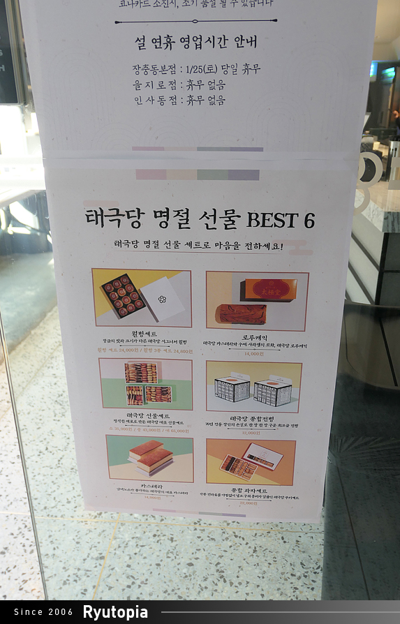 방문했던 날이 설 연휴 기간이었는데, 설 선물세트 판매 안내 포스터가 붙어있네요.