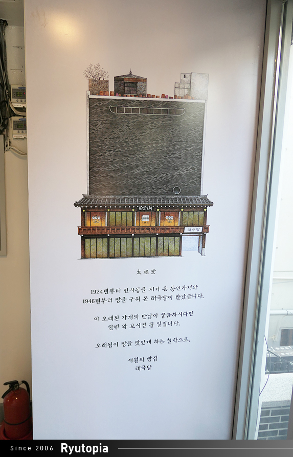 태극당은 인사동 문화의거리 통인가게 2층에 위치해 있습니다.