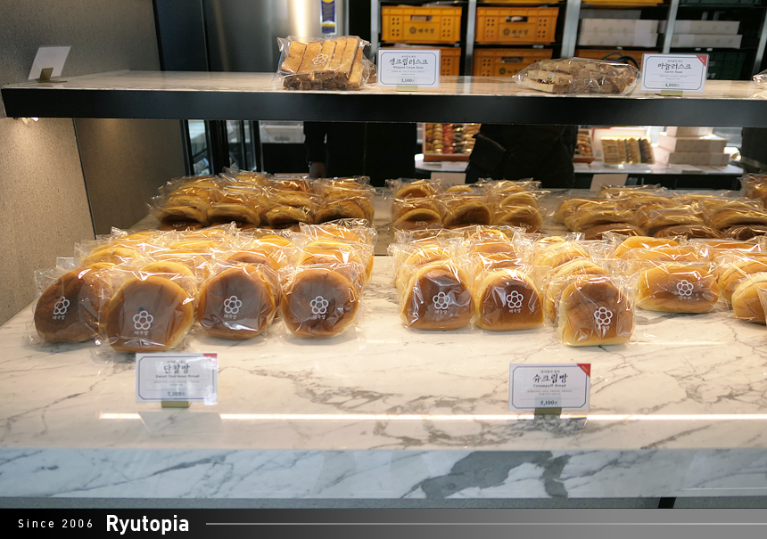본점에서 잘 나가는 대표적인 메뉴, 혹은 대중적인 메뉴 몇 가지만 가져온 느낌입니다. 사진은 단팥빵과 슈크림빵.