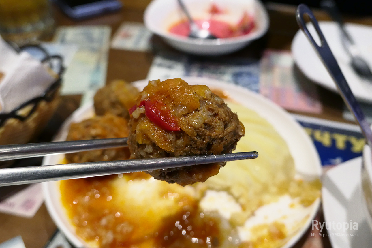 다진 고기와 함께 쌀알이 함꼐 들어간 조금 특이한 미트볼인데, 고기가 꽤 맛이 괜찮더군요.