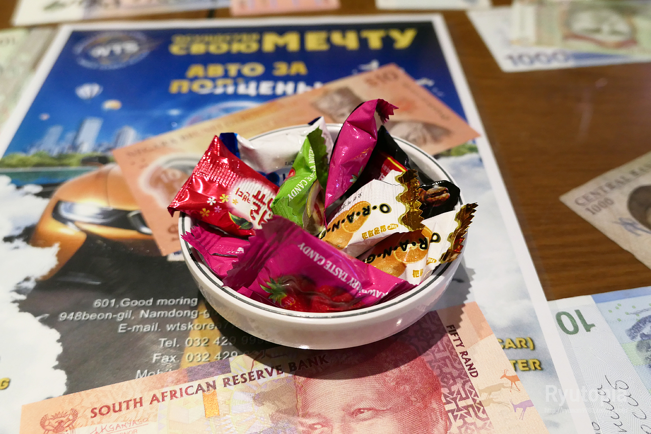 테이블에 사탕 그릇이 있어 식사를 하고 난 뒤엔 입가심으로 사탕을 하나씩 까 먹을 수 있습니다.