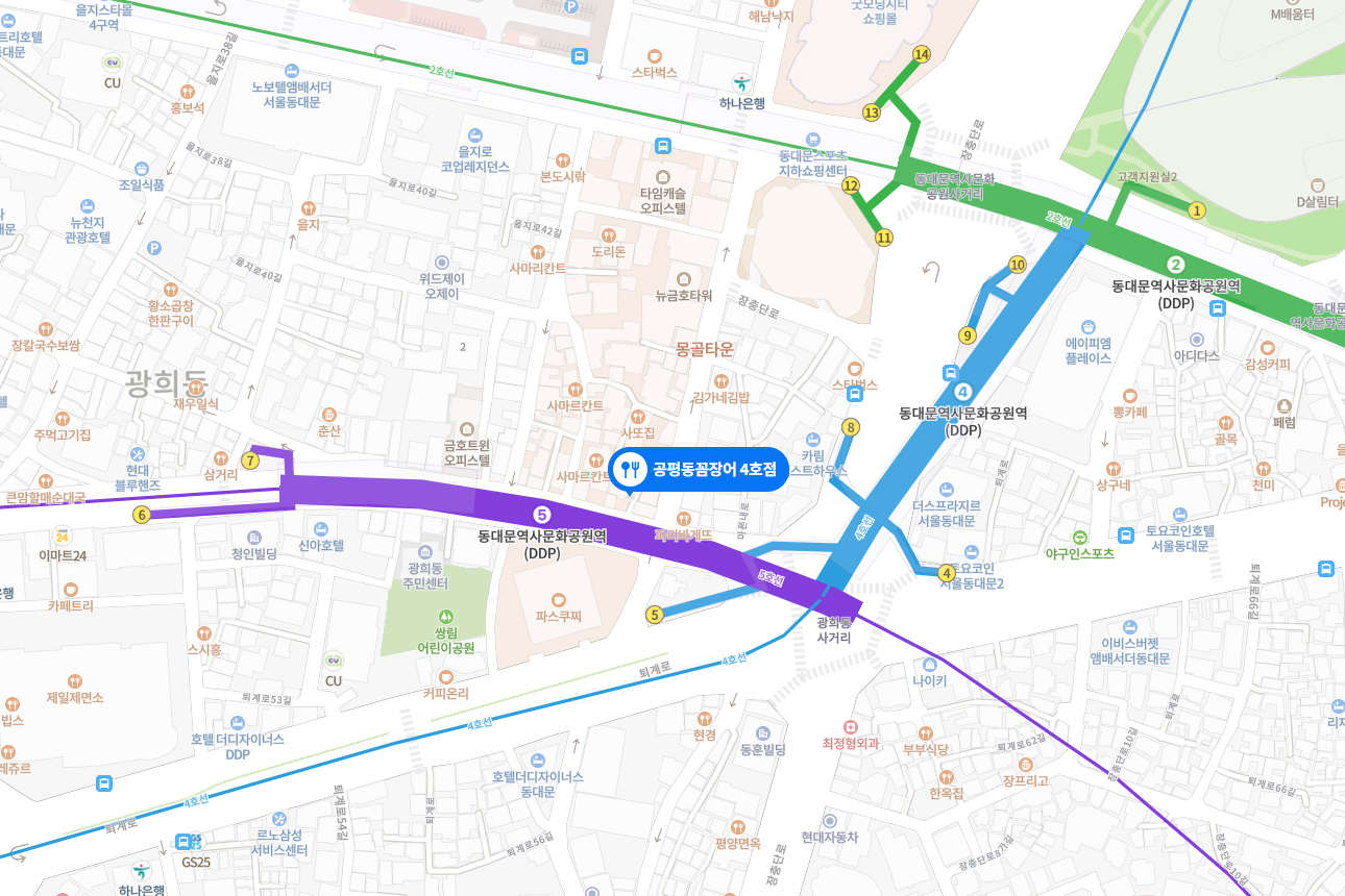 ※ 카페 퓨전 찾아가는 길 : 지하철 2, 4, 5호선 동대문역사문화공원역 5,8번출구 하차, 공평동꼼장어 4호점 건물 2층