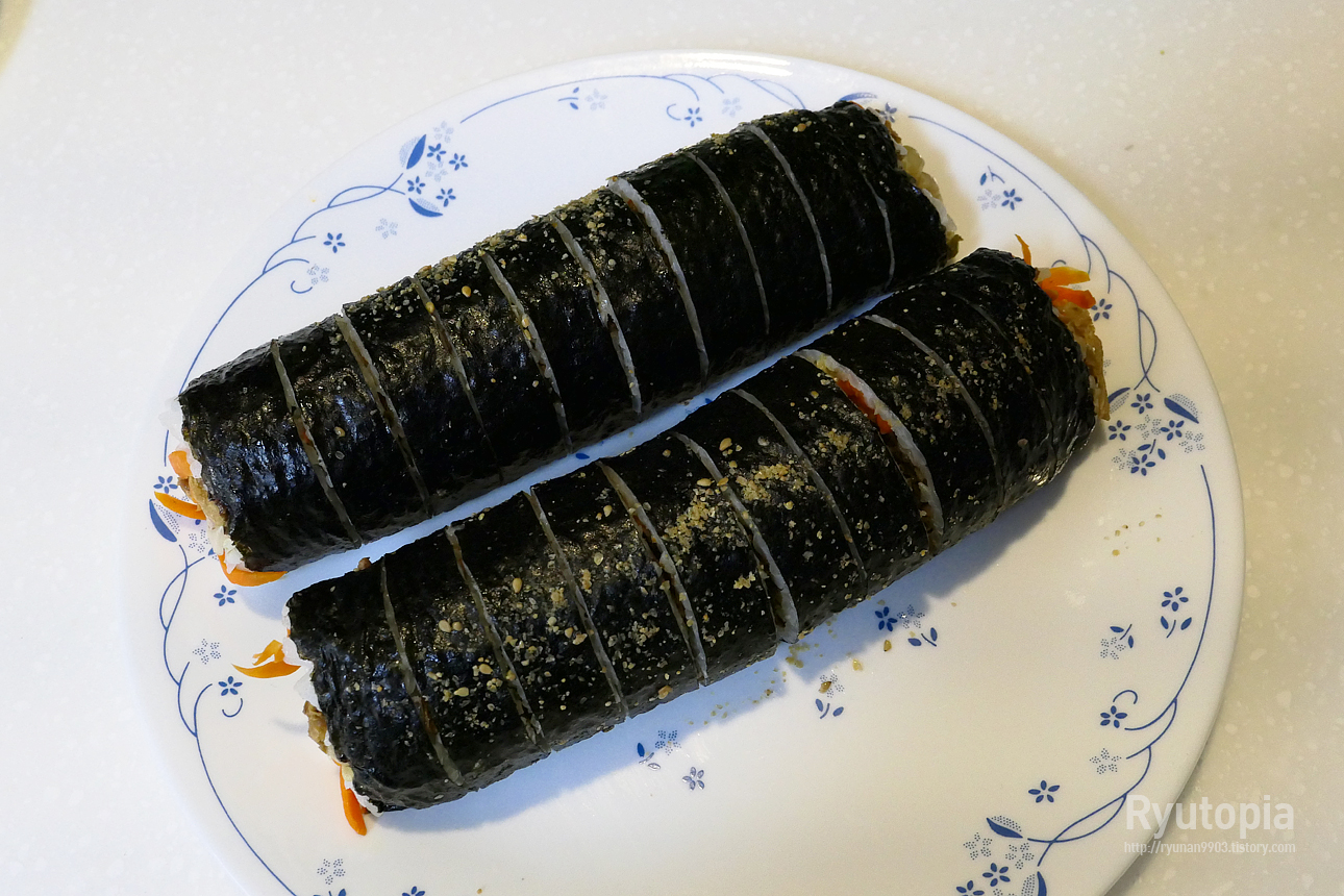 어쨌든 이 김밥들은 라면 끓여서 같이 잘 나눠먹었습니다.