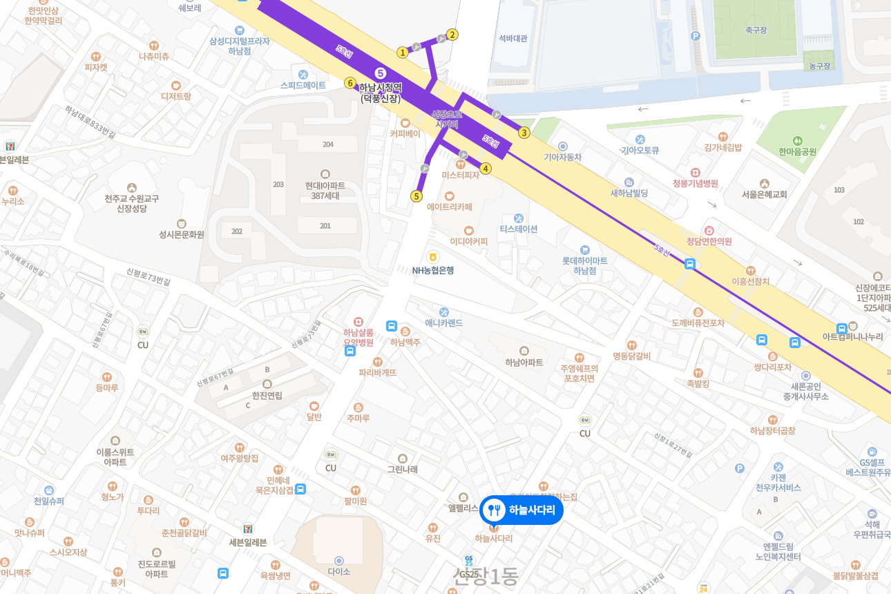 ※ 하늘사다리 찾아가는 길 : 지하철 5호선 하남시청역 4번출구 하차 후 신장시장 옆 석바대시장 상점가 내 위치