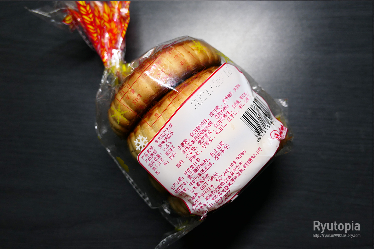 팥소가 부드럽지 않고 딱딱해서 물이라든가 음료 없이 그냥 월병만을 먹는 건 거의 불가능한 수준이라