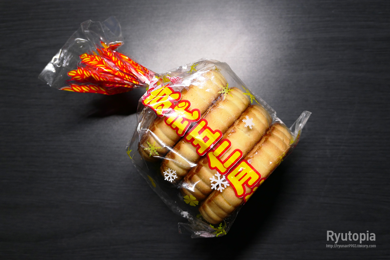 외관은 과자보다는 만쥬에 좀 더 가까운 모양인데, 공산품이라 그런지 꽤 딱딱하더군요.