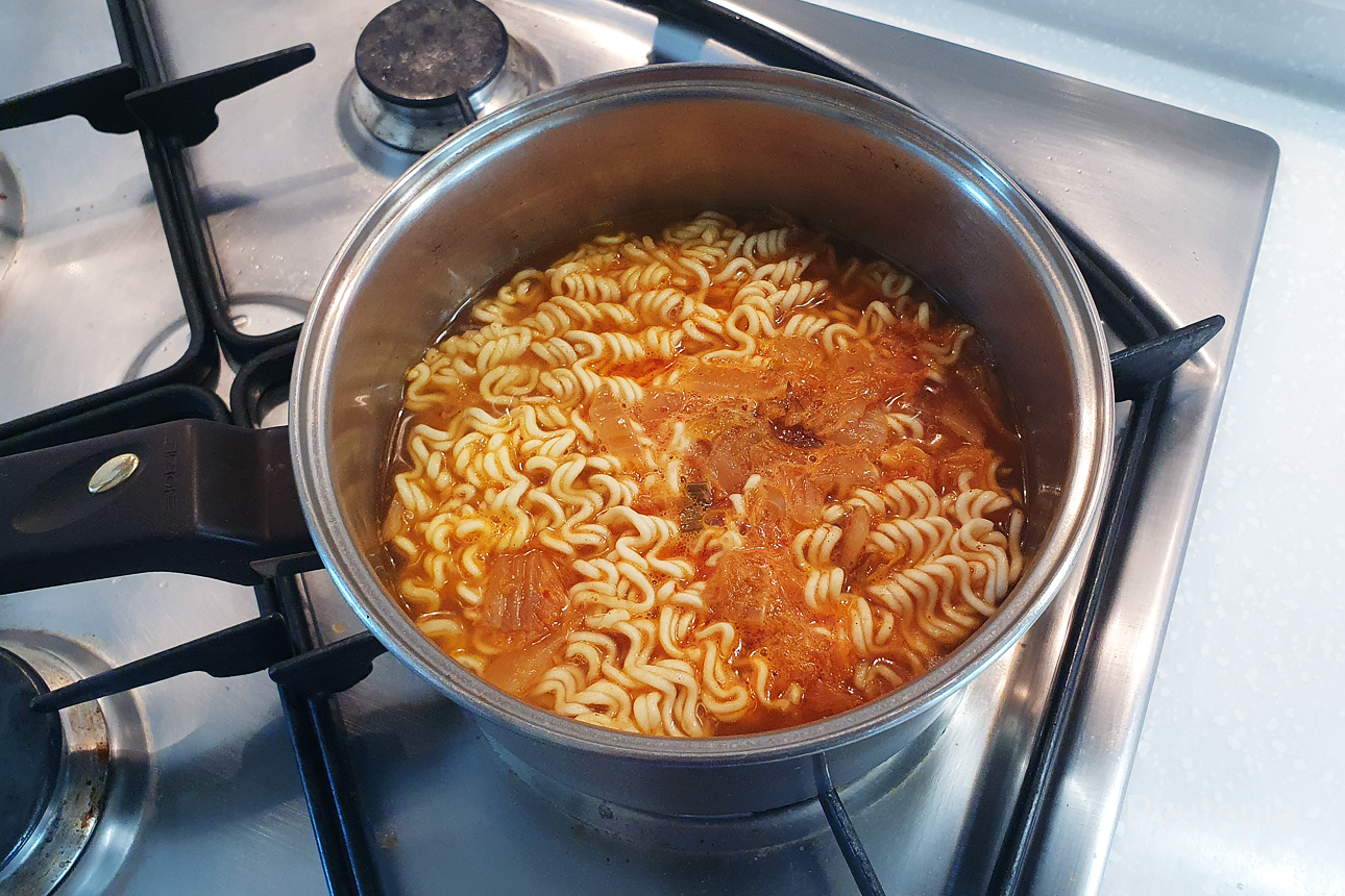 분말스프와 오모리 김치 레토르트 파우치는 면이 끓을 때 함께 넣고 끓이면 됩니다.