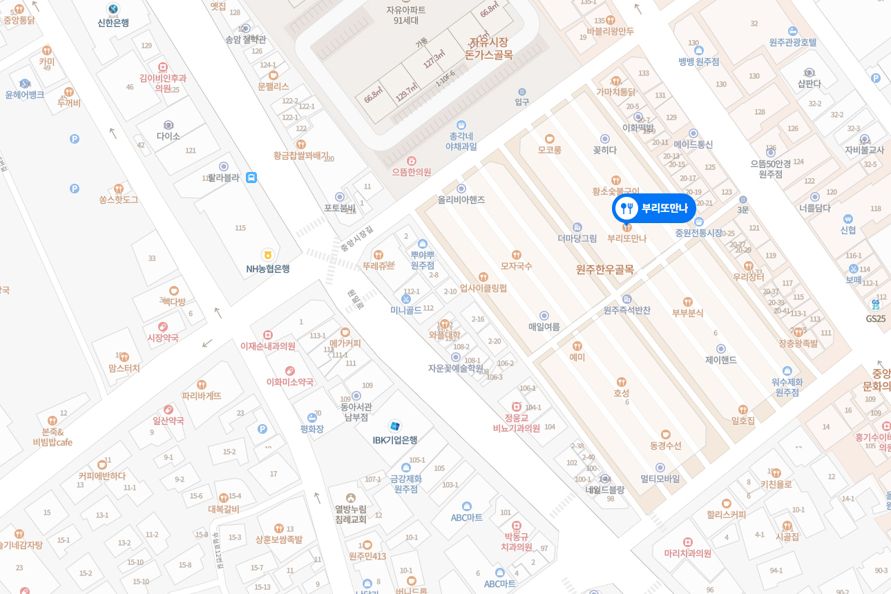 ※ 부리또만나 찾아가는 길 : 강원 원주시 중앙시장길 6(원주 미로예술중앙시장 라동 2층 위치)