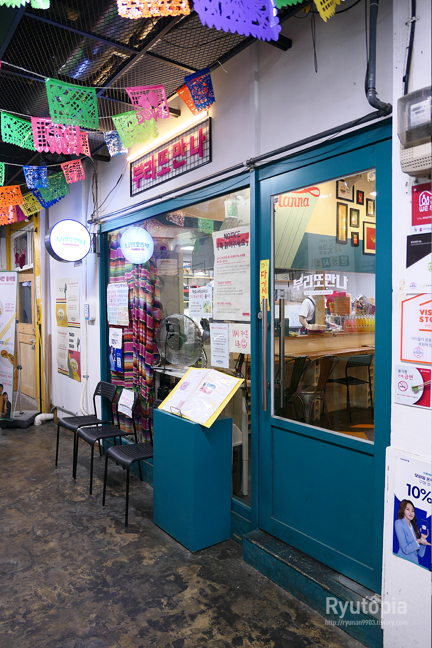 지난 '어머니 손칼국수' 에 이어 두 번째로 찾은 가게는 손칼국수집과 같은 라인 복도에 위치한 '부리또만나' 입니다.