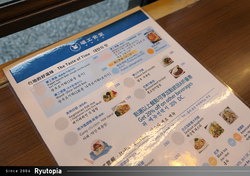 가격이 조금씩 다릅니다. 일회용 용기에 담겨나오는 기본 광부도시락의 가격은 180NTD(7,200원)