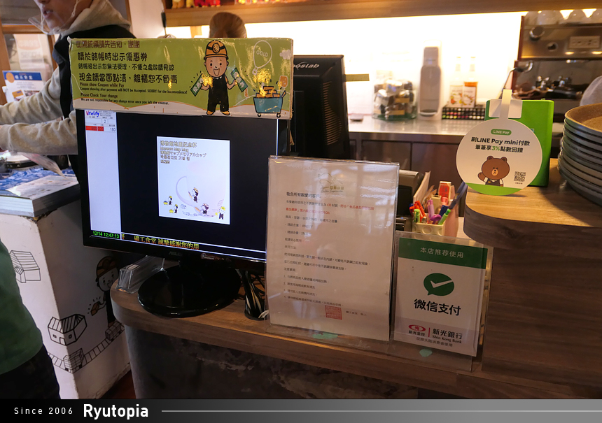 매장 입구의 결제 카운터. 라인 페이도 지원하는군요.