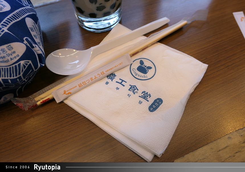 광부식당(礦工食堂) 로고가 프린팅되어 있는 전용 티슈와 일회용 젓가락, 숟가락이 함께 나옵니다.
