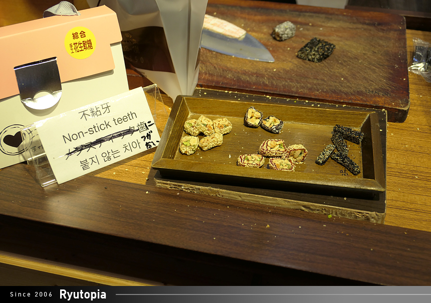 이 가게는 견과류를 넣어 만든 강정과 엿을 만들어 파는 곳입니다.