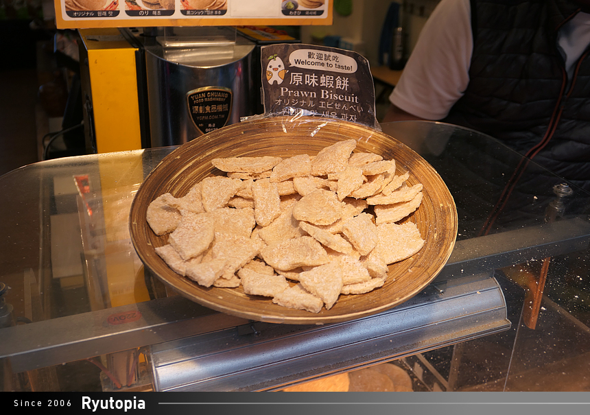 그리 낮설지 않은 새우맛 뻥튀기. 시식 인심도 매우 좋습니다.