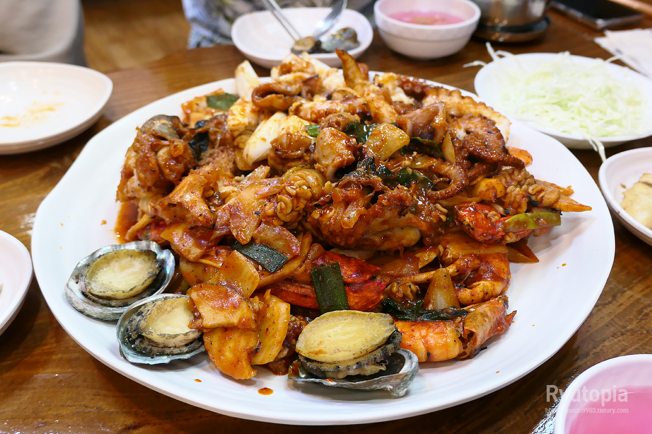 비오듯 땀이 쏟아지는... 물론 매운것과 별개로 큼직하고 통통한 해산물은 밥과 아주 잘 어울렸습니다.