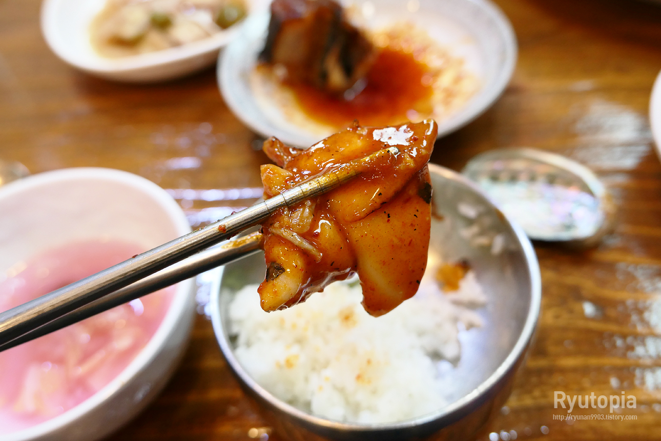 밥도 한 공기만으로는 모자라고 필경 더 시켜야 할 판. 무엇보다 적당히 달짝지근하면서 매콤한 양념이 절묘했습니다.