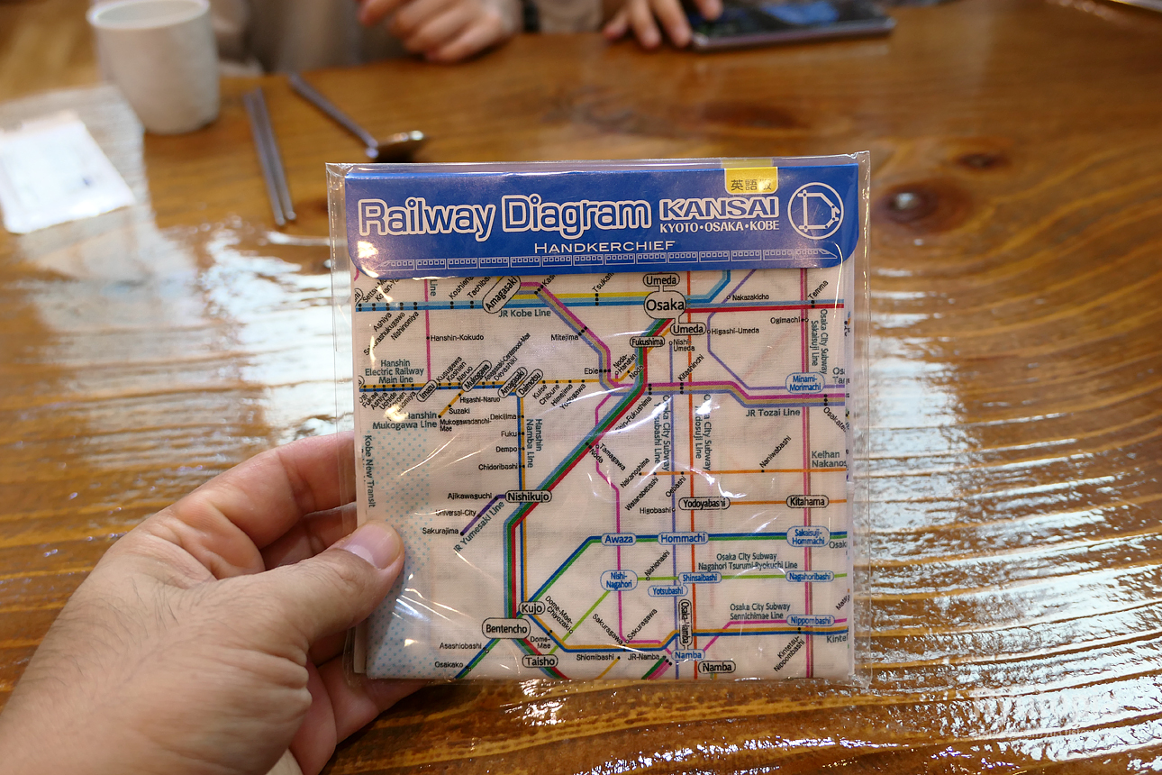 칸사이 지역 철도 노선(영문판)을 인쇄한 손수건... 어... 그... 음.... 정말 고맙긴 한데,