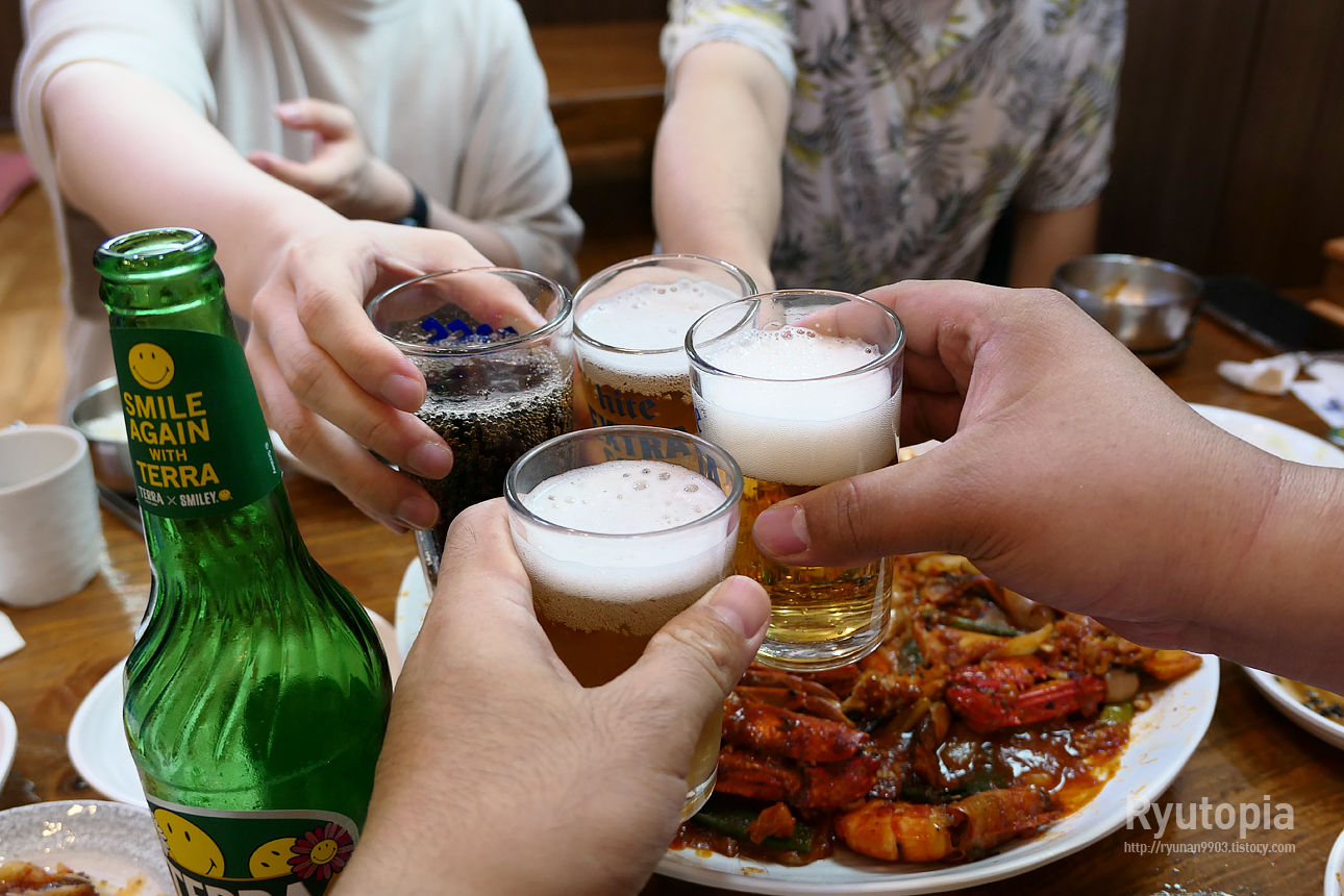 술은 많이는 아니고 가볍게 테라 한 병으로 건배하는 정도만...