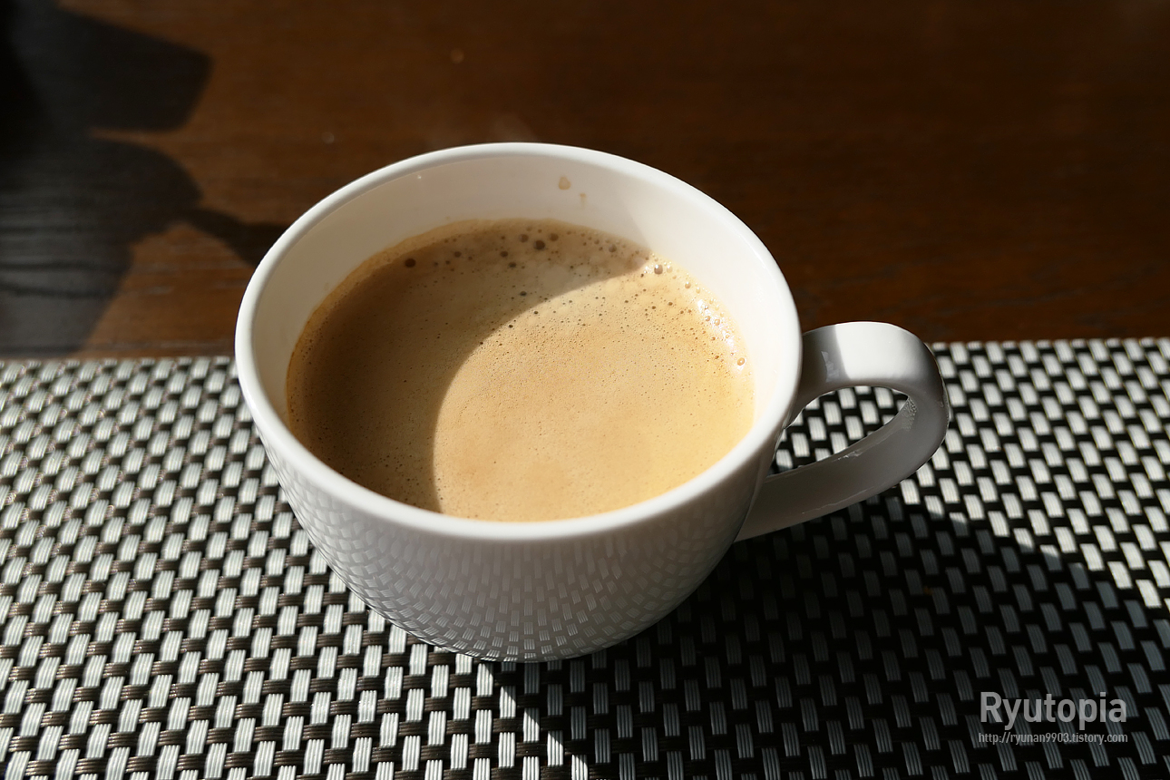 마무리로 커피도 한 잔 가져와서 느긋하게 창 밖 풍경 바라보며 커피도 즐겼습니다.