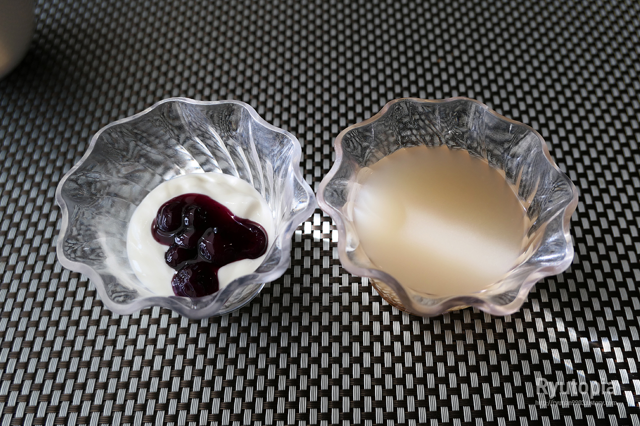 블루베리를 넣은 요거트, 그리고 음료 코너에 있었던 식혜.
