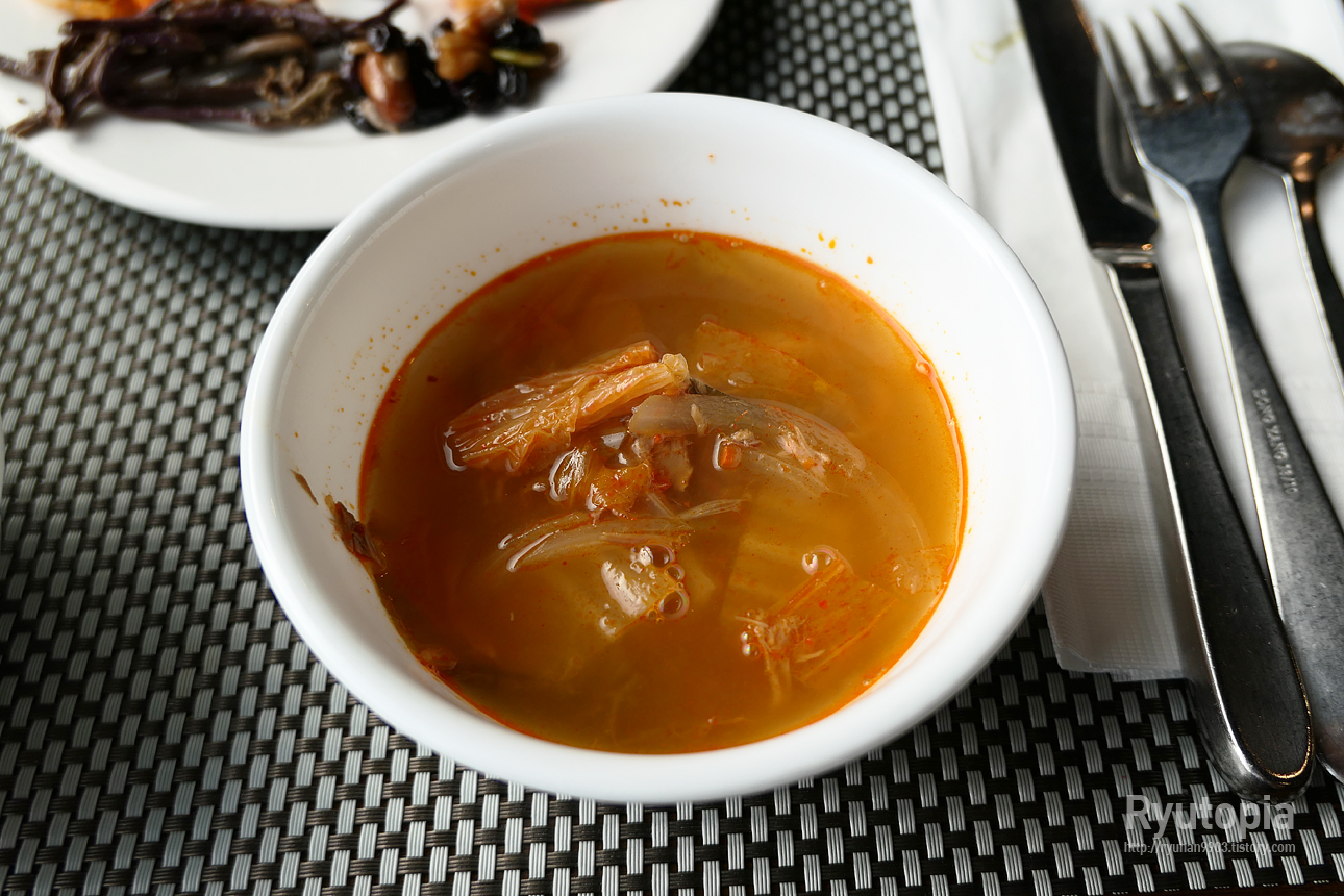 밥과 찌개, 그리고 접시 하나에 가져온 한식 반찬. 참고로 김도 있었습니다만 김은 가져오지 않았습니다.