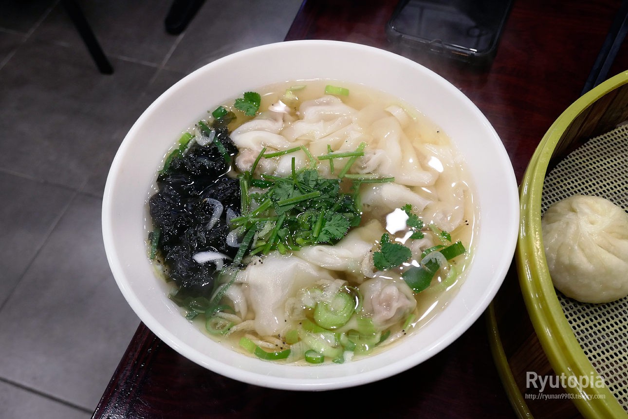 소룡포의 두껍고 씹는 맛 있는 만두피와 달리 훈뚠에 들어가는 만두는 굉장히 얇고 부드럽게 씹히는 식감.