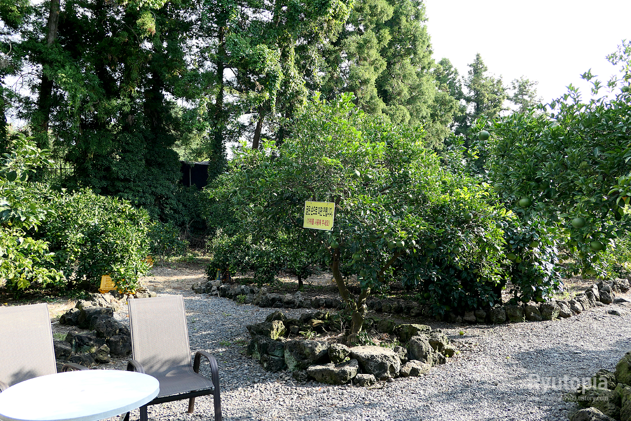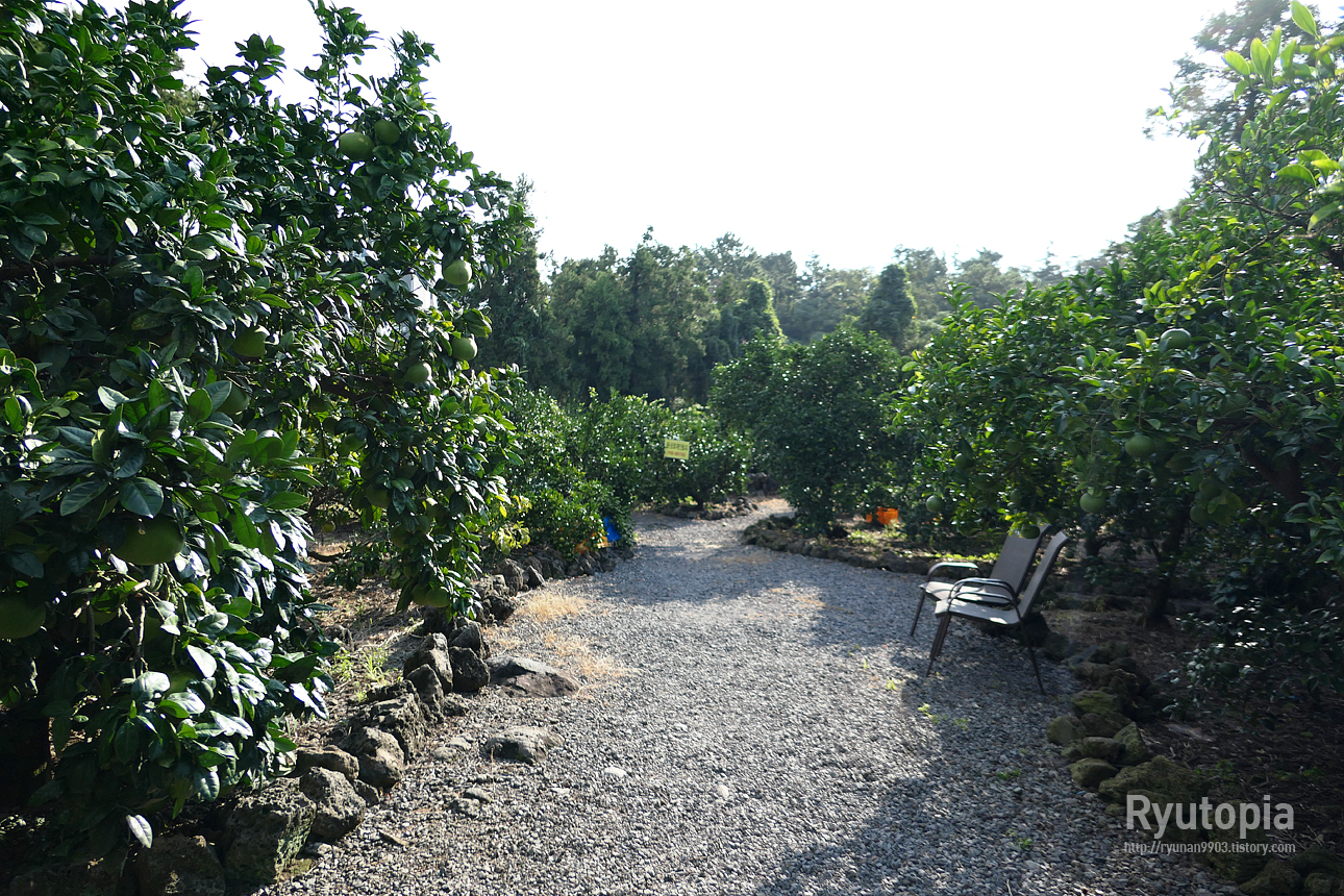 감귤밭이 꽤 넓게 펼쳐져 있는데, 시기가 안 맞아 아직 감귤이 노랗게 익진 않았다.