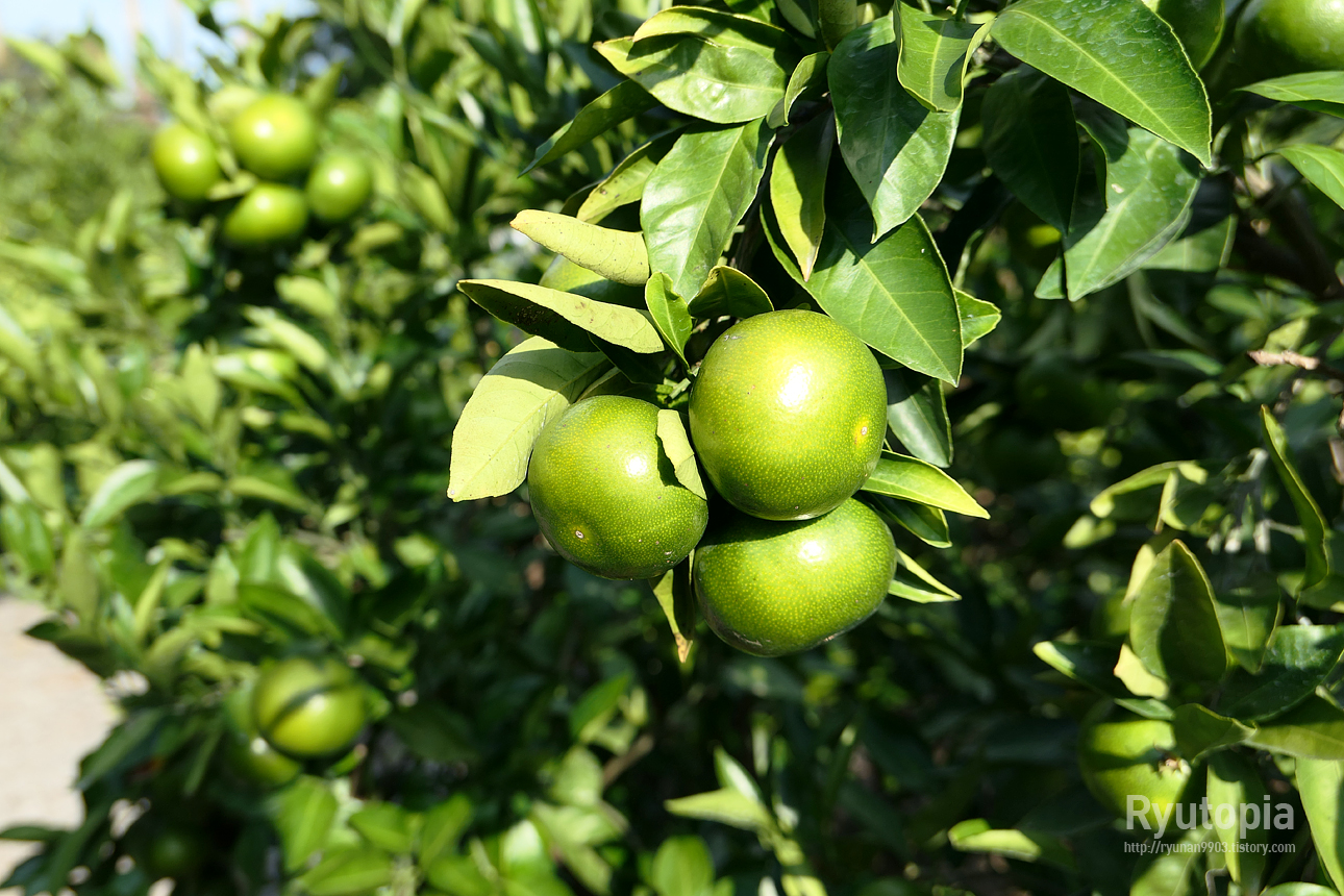 새파란 귤이 이렇게 많이 달려있는 걸 보니 되게 이상하네.