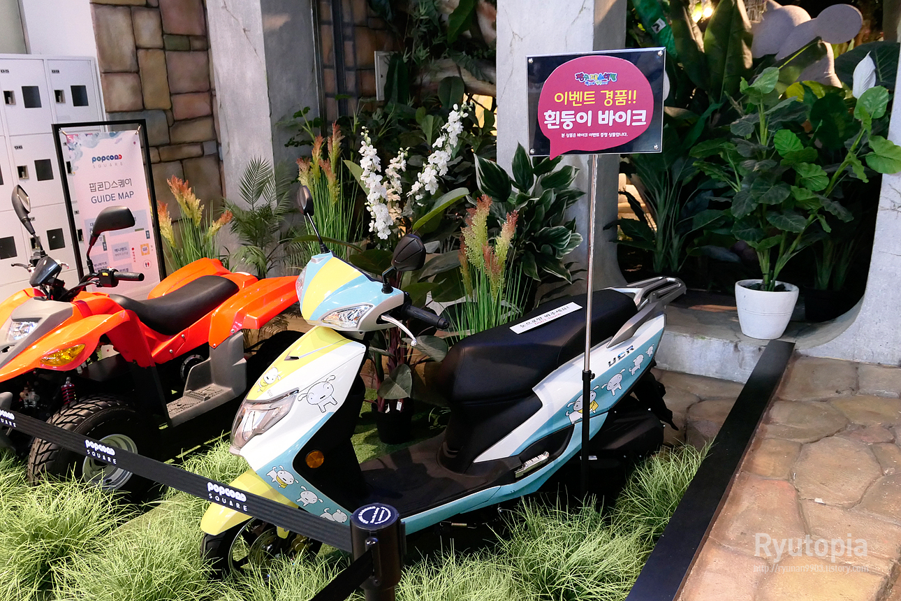 어떤 이벤트가 있는지는 잘 모르겠지만, 이벤트 경품으로 흰둥이 바이크 한 대가 전시 중이었습니다.