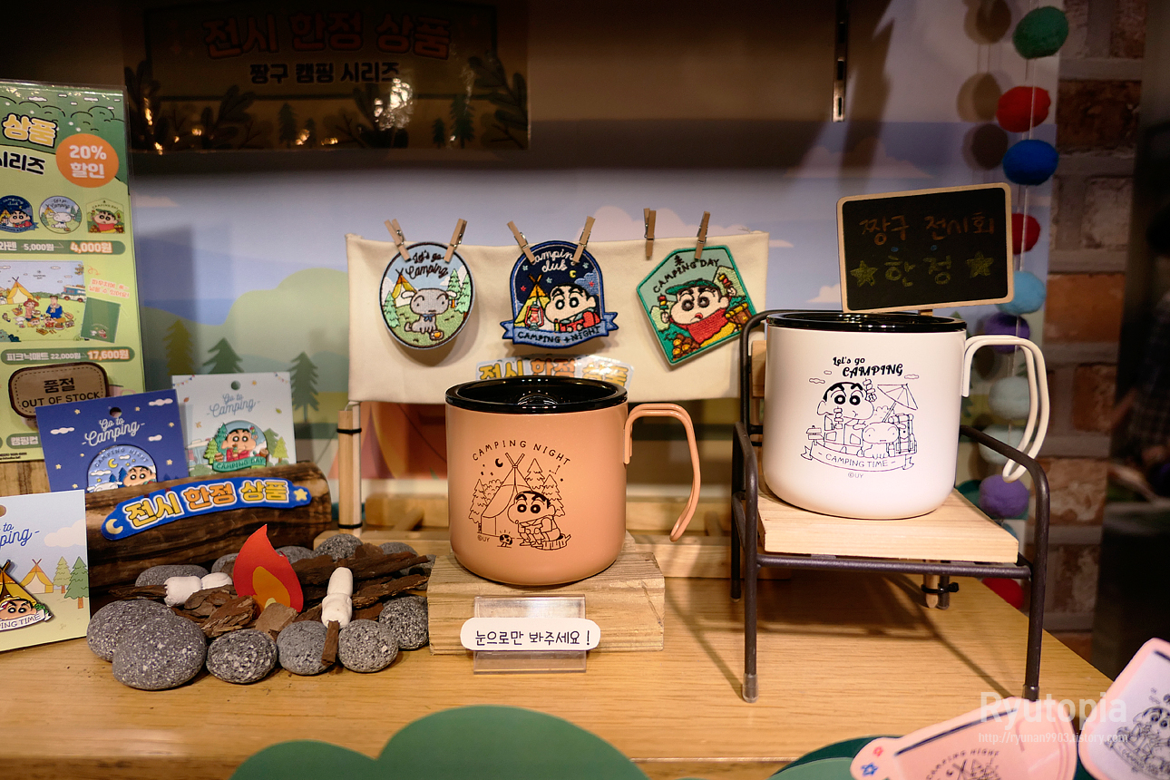짱구야 캠핑가자 행사 한정 전시상품들. 머그잔 되게 괜찮네요.