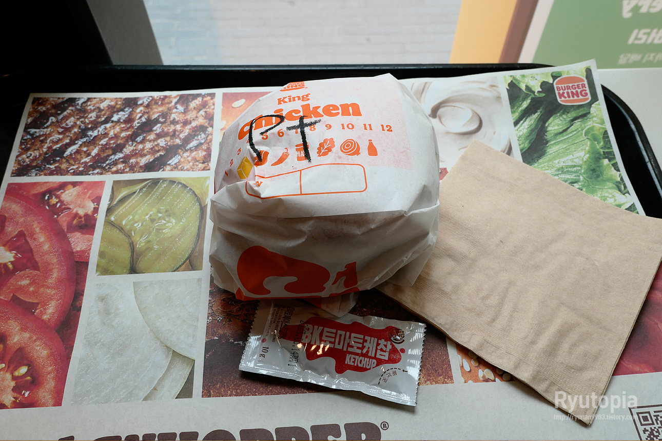 직원에게 케찹 하나 달라고 요청한 뒤 치킨패티 위에 케찹을 골고루 뿌려먹으면 훨씬 맛있게 버거를 즐길 수 있습니다.
