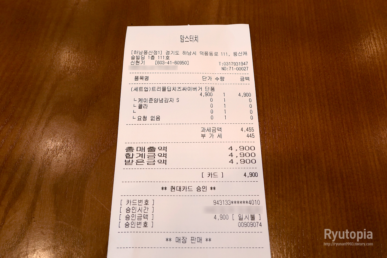 저는 맘스터치 갈 때 주로 5호선 하남풍산역 근처에 있는 하남풍산점 자주 가는데, 여기가 버거를 잘 만드는 편이라...