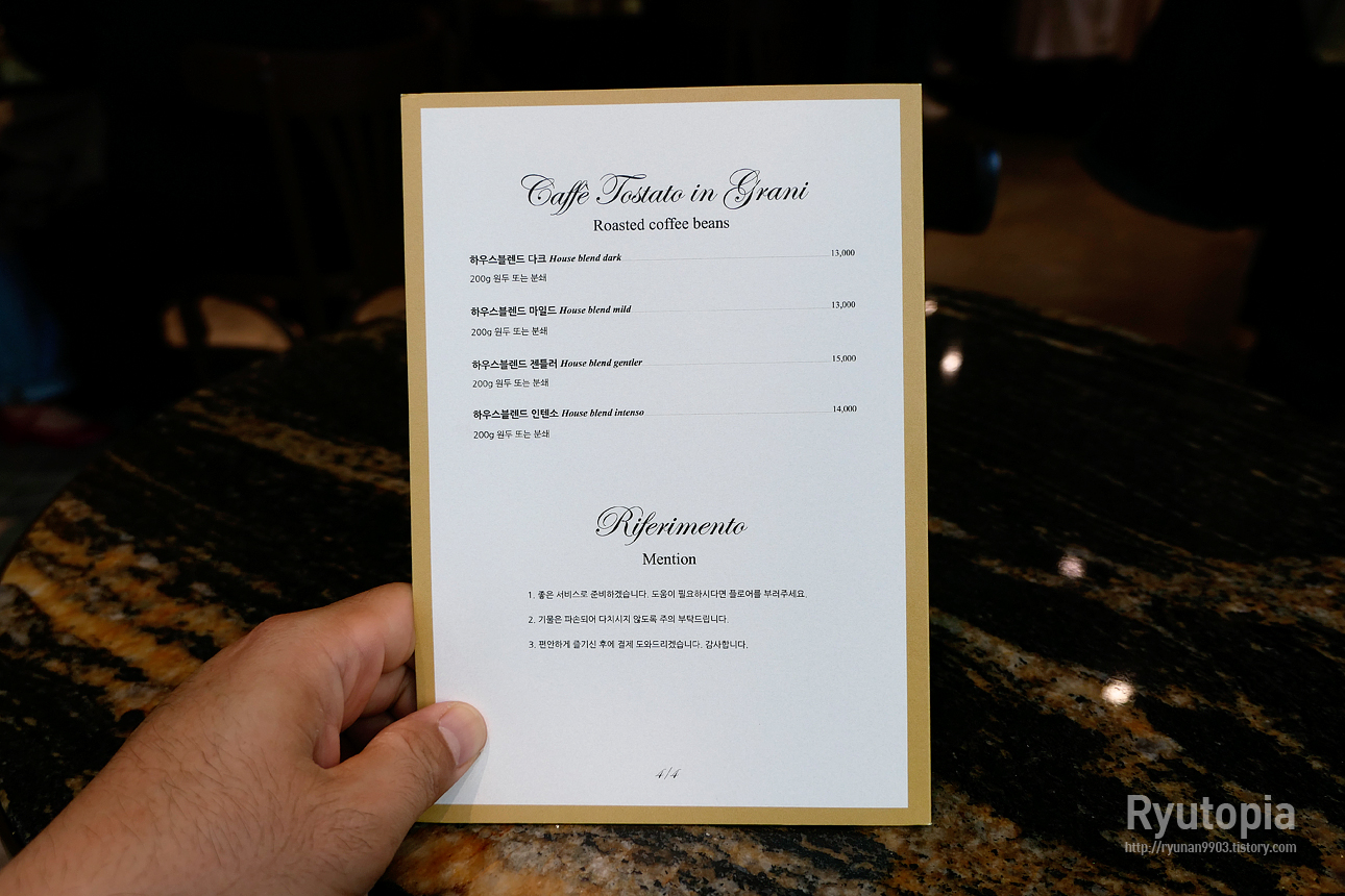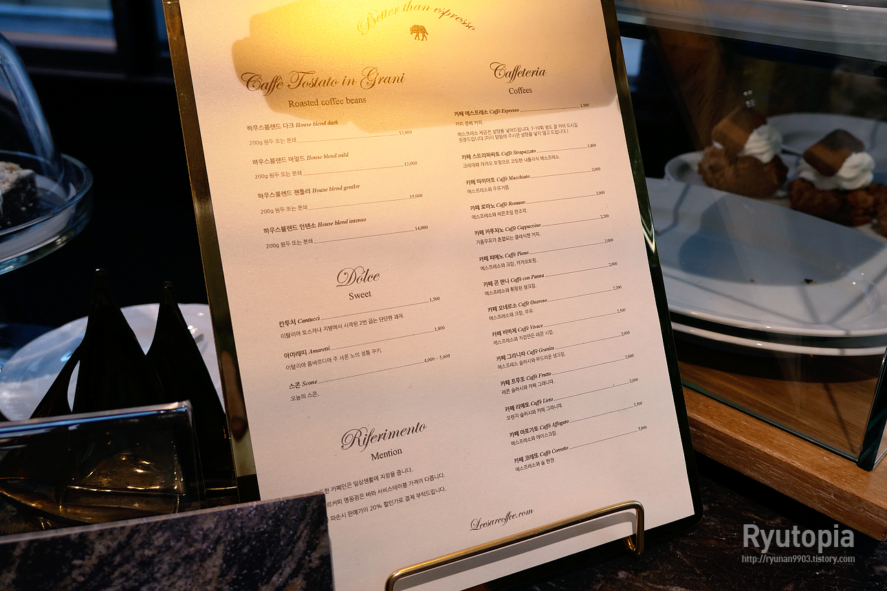 저는 처음 들어올 때 당황해서 그만 앉겠다고 하는 바람에 졸지에 추가요금을 내고 첫 에스프레소를 마시게 되었습니다.