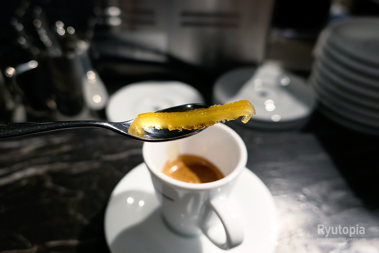 에스프레소의 향미가 강해 레몬의 향과 맛이 다소 가려질까 싶었습니다만, 레몬조림의 존재감도 상당한 편이라