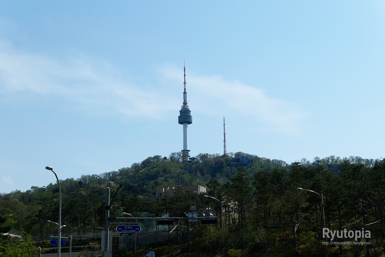어느 맑았던 주말, 명동에서 바라본 서울의 상징, 남산타워의 모습.