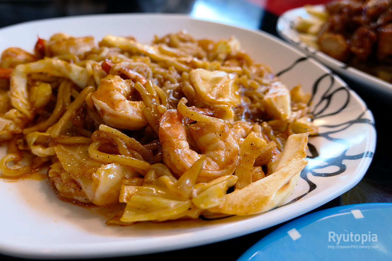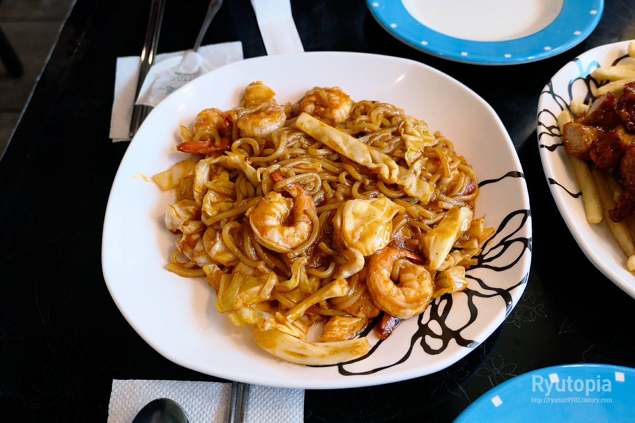 큼직한 새우를 넉넉하게 넣고 면과 볶아내어 일단 볼륨감 측면의 시각적으로도 꽤 괜찮아 보였습니다.