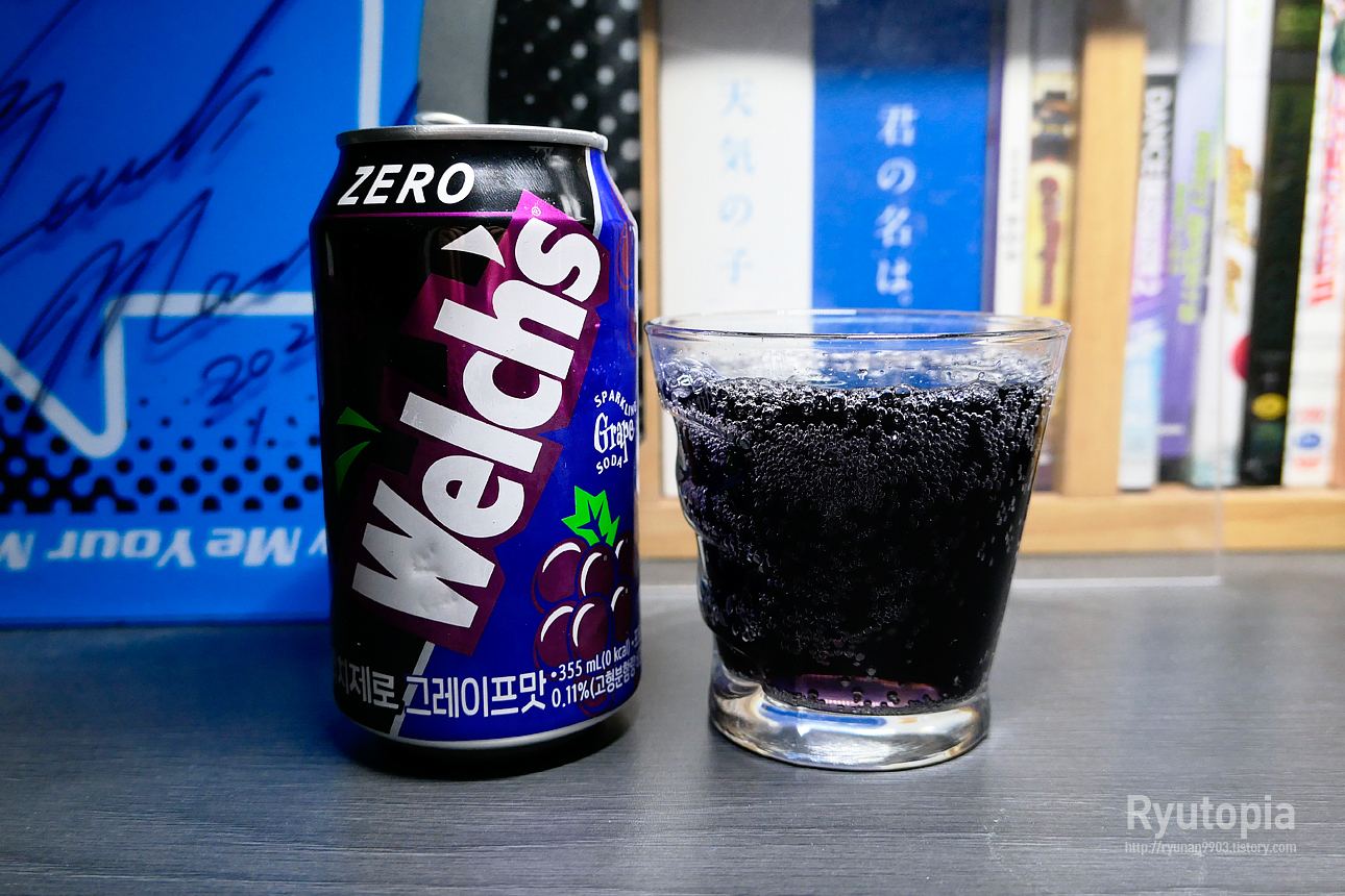 가장 궁금했던 웰치스 제로 그레이프부터 먼저 마셔보기로 합니다.