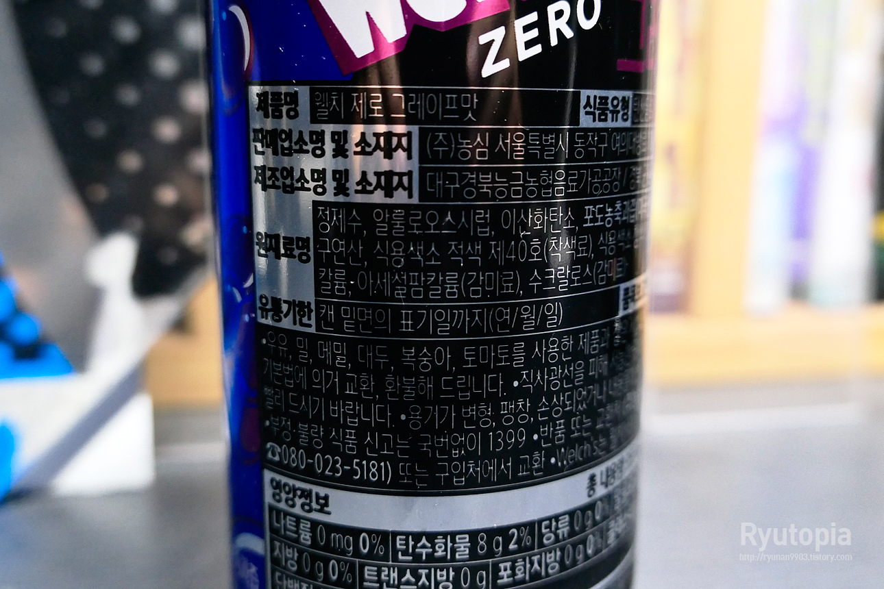 캔 위에 'ZERO' 라는 표기가 있는 것 이외의 나머지는 오리지널 웰치스와 캔 디자인이 동일합니다.