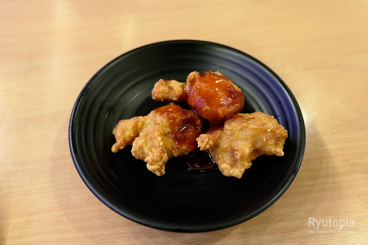 순살치킨 위에 양념치킨 소스를 끼얹은 것. 그 익숙한 순살치킨 맛이라고 보시면 될 듯.