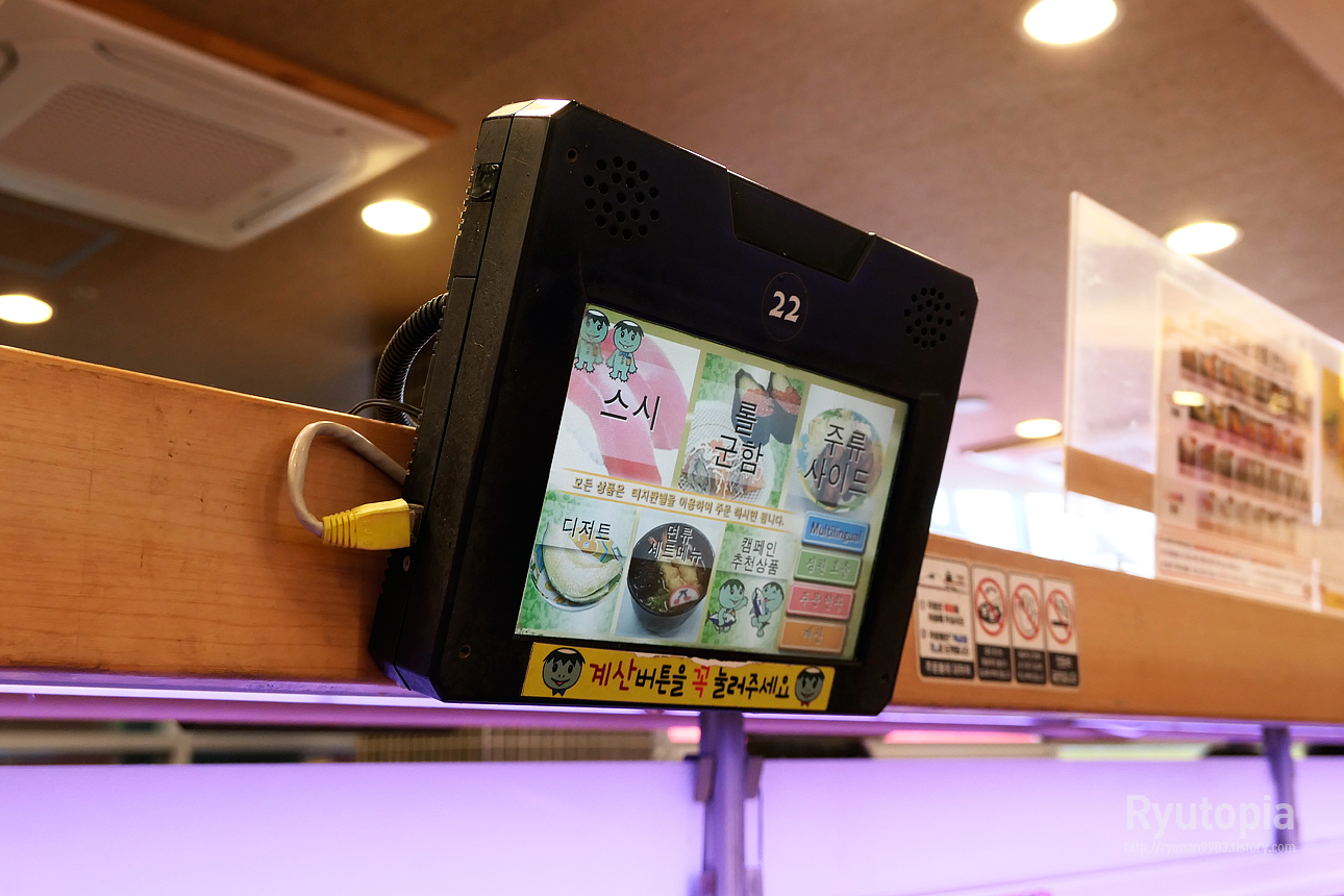 테이블 옆으로 레일과 함께 접시에 담긴 초밥이 움직이고 있는데, 문제는 움직이는 초밥이 거의 없는 편.