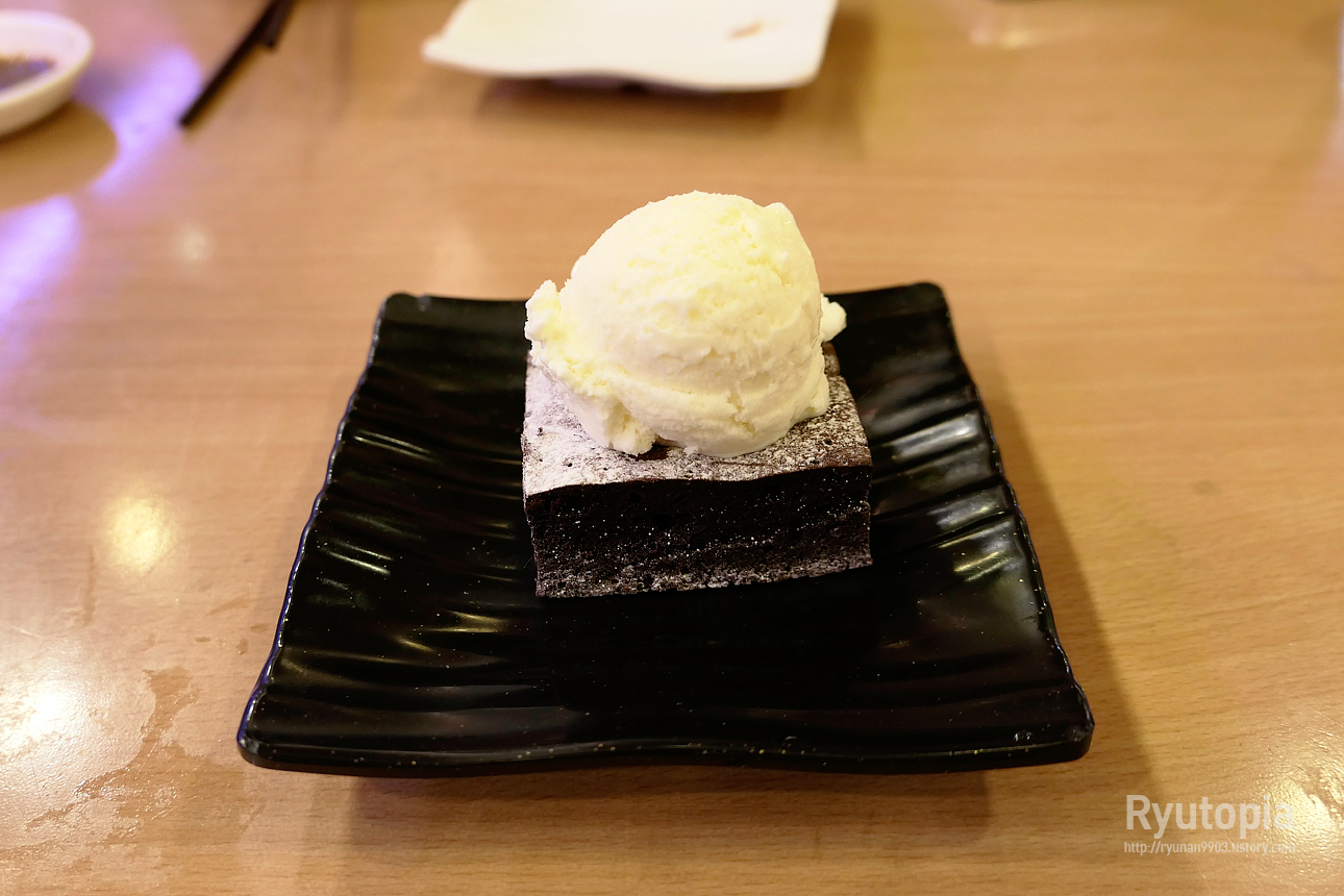 차가운 아이스크림, 그리고 따끈하게 데운 브라우니 케이크와의 조합이 잘 어울리는 마무리 디저트.