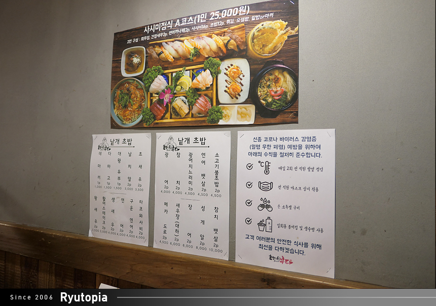 코스 메뉴도 있긴 하지만 초밥을 전문으로 하는 매장이라 그런지 초밥의 퀄리티는 꽤 괜찮은 편입니다.