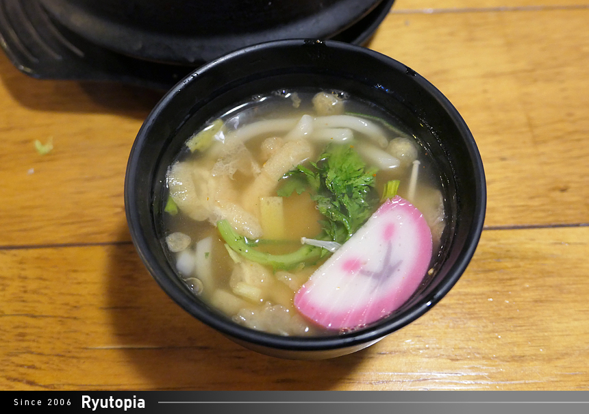 초밥을 다 먹고 나온 다음의 요리는 냄비 어묵 우동입니다.