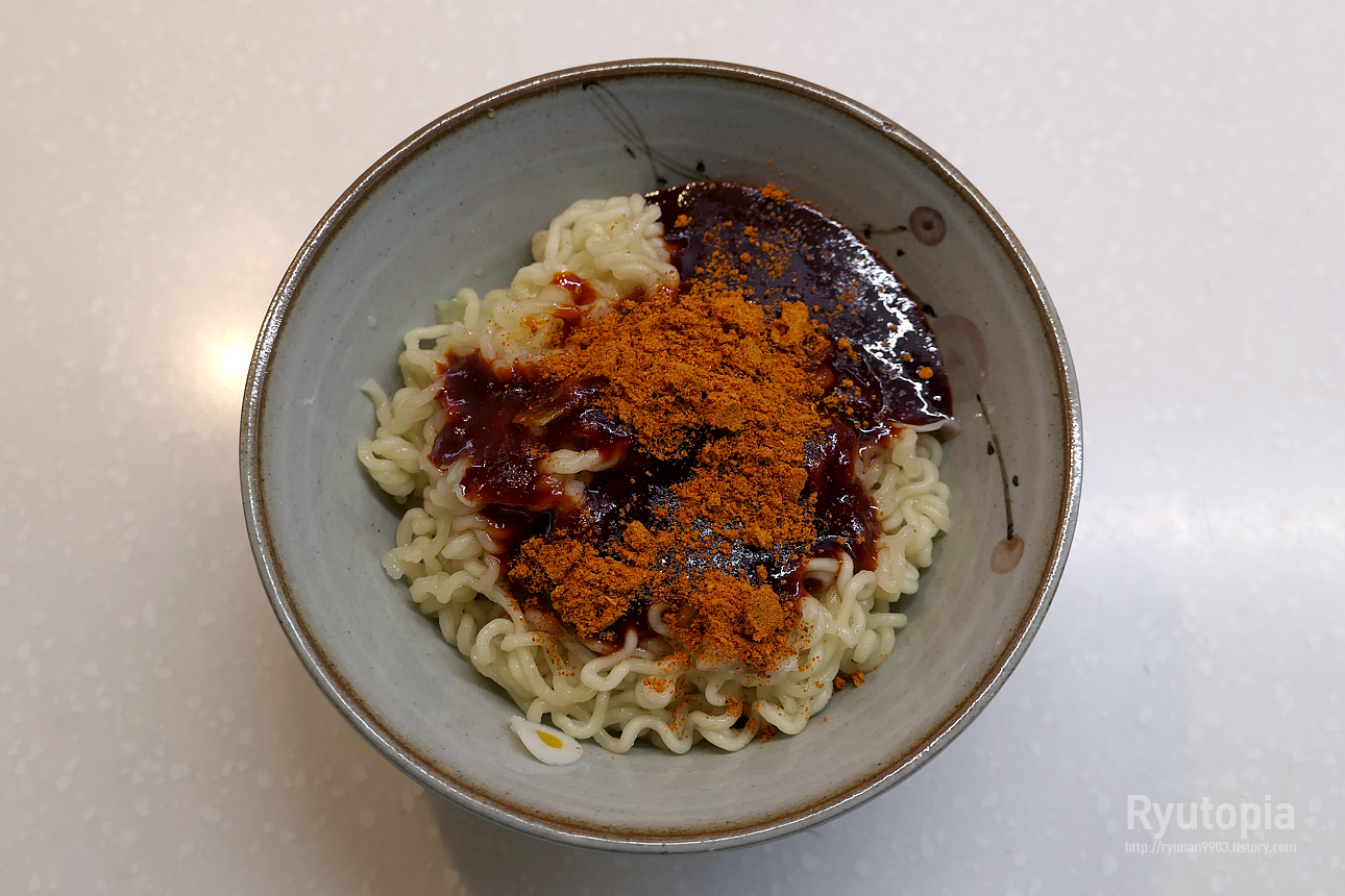 액상스프, 그리고 별첨 분말스프(아마 이게 매운맛을 내는 스프인 것 같은데)를 넣은 뒤 잘 비벼주면 됩니다.