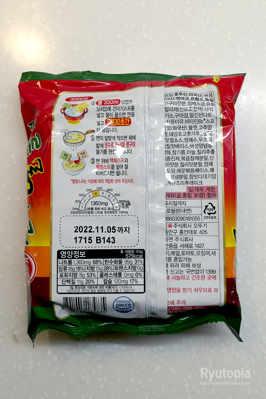 (오뚜기 진짜 쫄면 : http://ryunan9903.egloos.com/4424020)